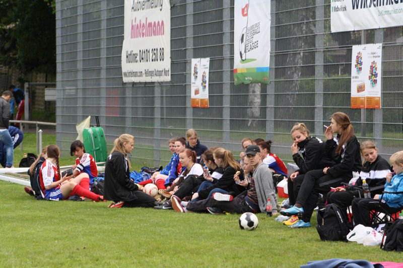 In der anderen Finalgruppe überzeugte erneut der SC Sperber, verlor kein einziges Spiel und wurde Erster vor TuS Berne, Harburg und Wellingsbüttel. Die Halbfinalgegner standen also fest. Wir mussten gegen Berne antreten und HR gegen Sperber. Während die Halstenbeker sicher mit 2:0 siegten, taten wir uns lange Zeit schwer gegen Berne. Doch aus dem Gewühl heraus war Svenja zur Stelle und schoss uns ins Finale. Ein Derby mit dem Ortsrivalen im Finale war auf jeden Fall das Highlight des Tages. Zuvor sicherte sich Wellingsbüttel jedoch den siebten Platz (1:0 gegen Schwachhausen) und Harburg überrannte Poppenbüttel mit 4:0 und wurde am Ende guter Fünfter.